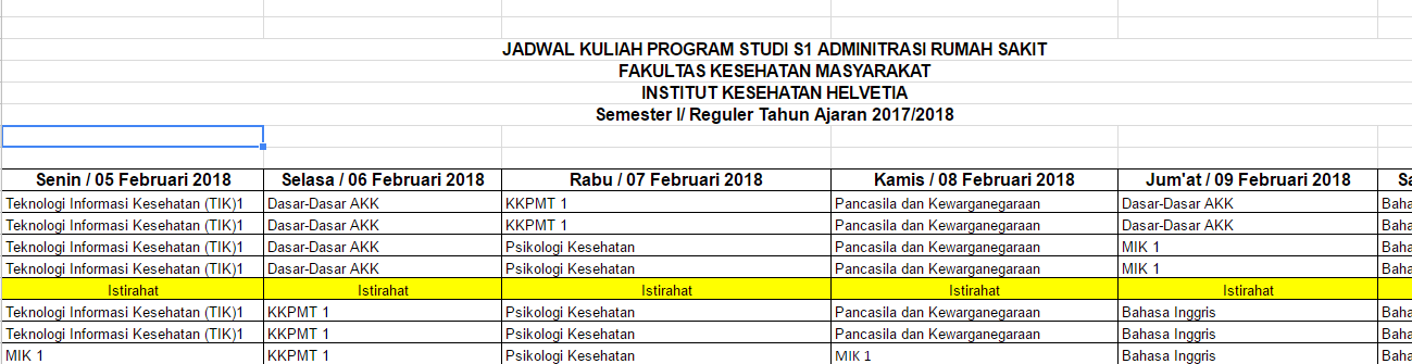 Jadwal Kuliah S1 Administrasi Rumah Sakit Semester Genap T.A. 2017/2018